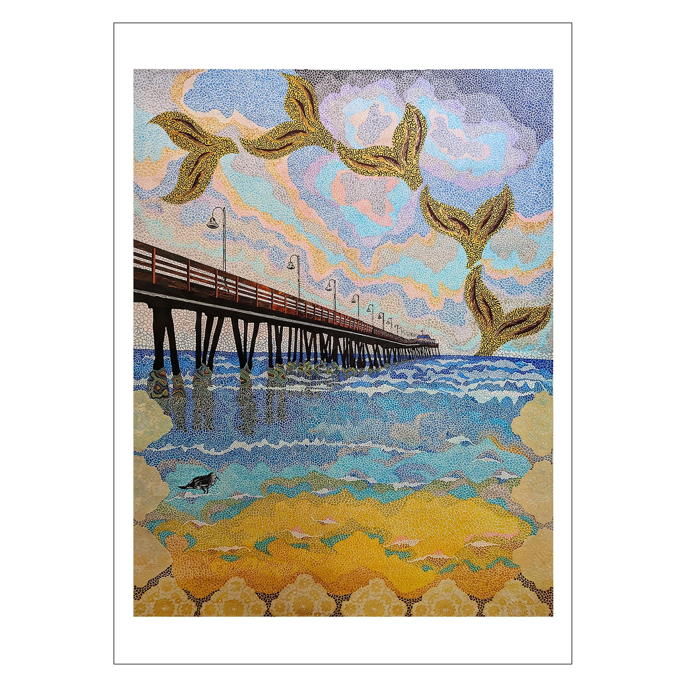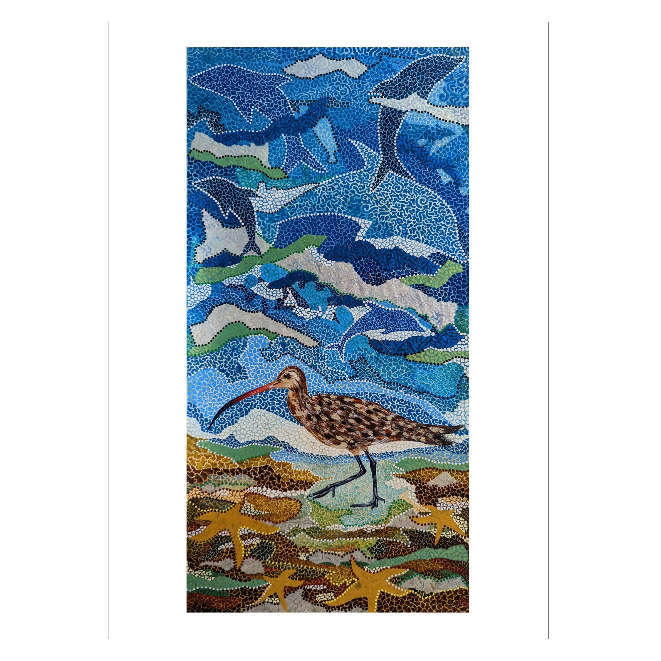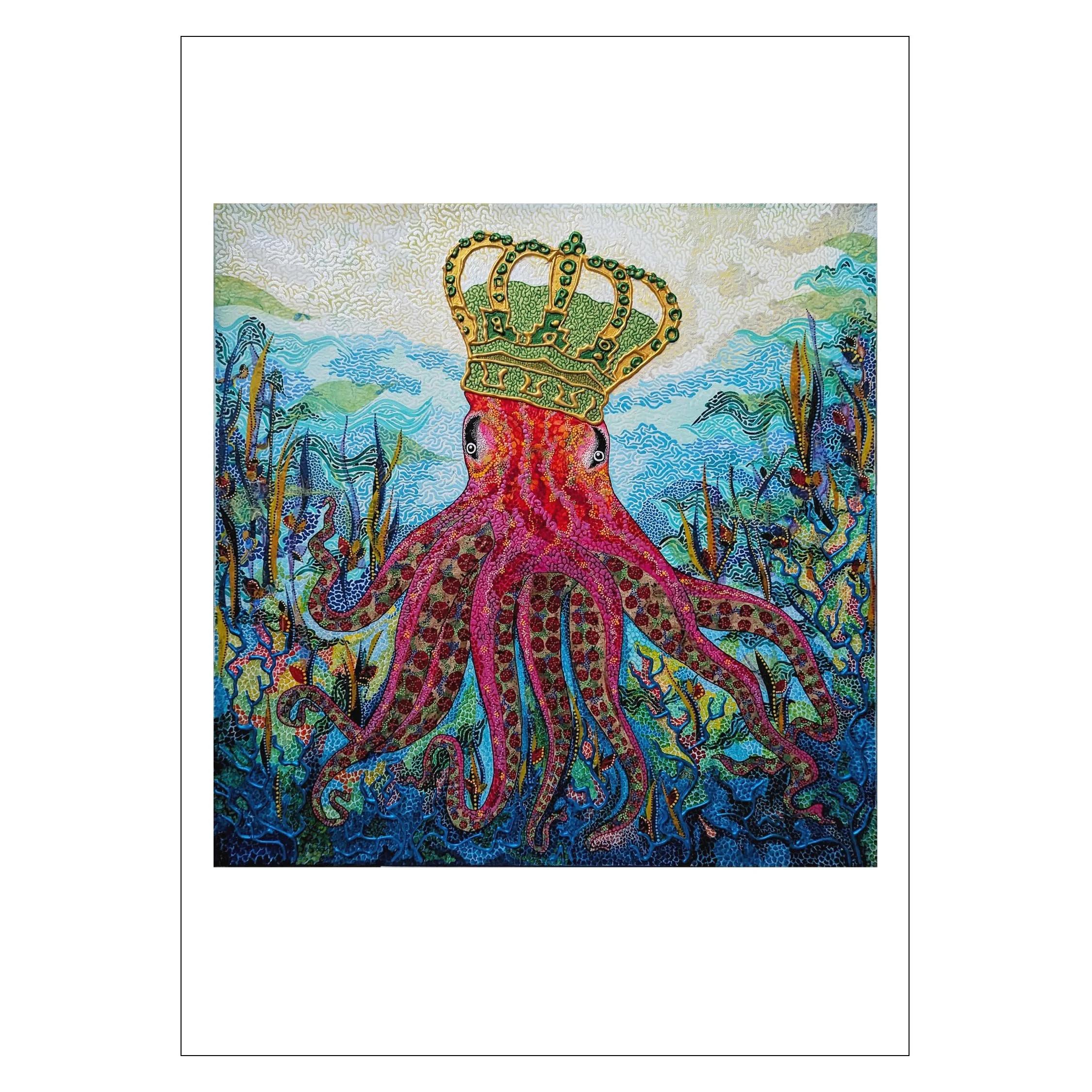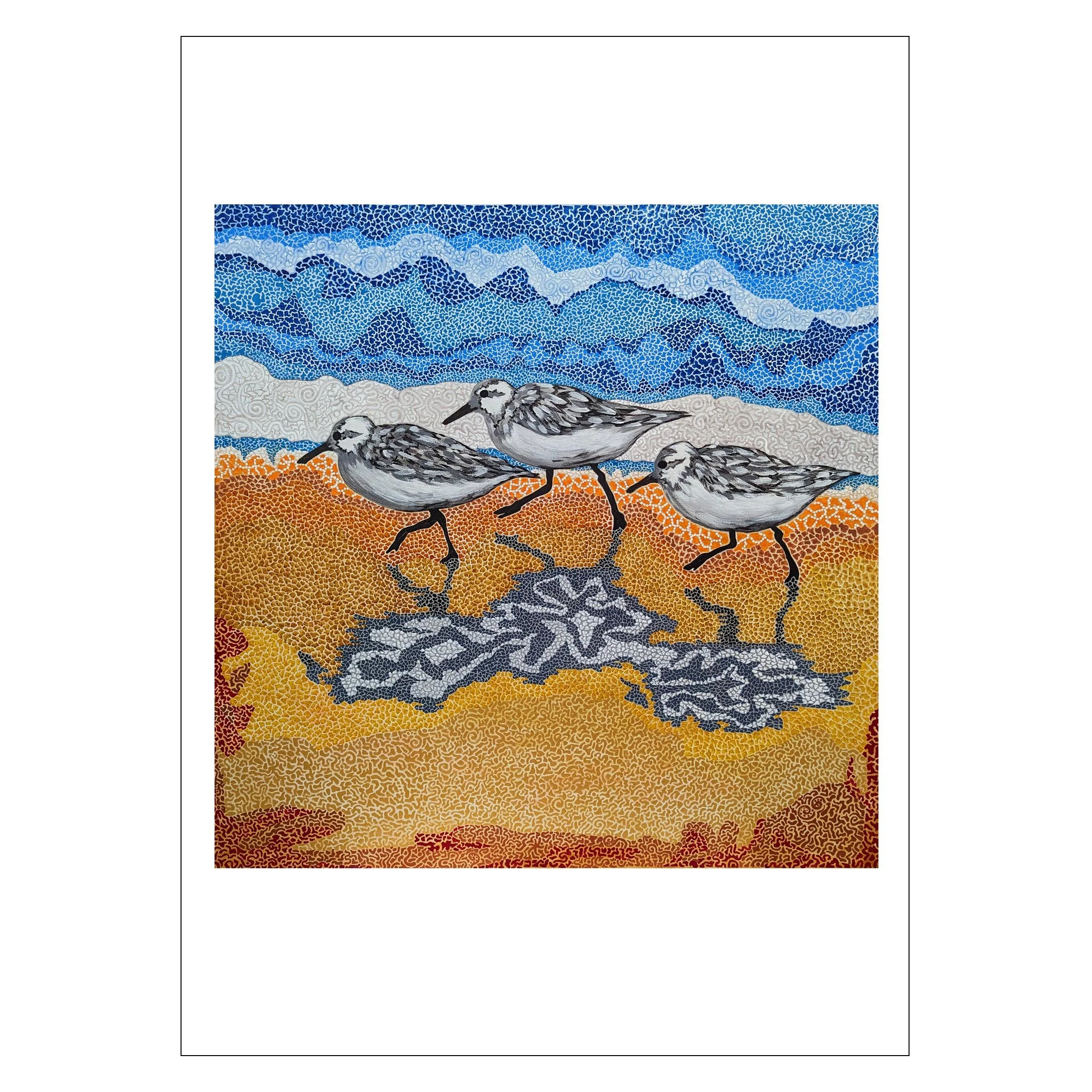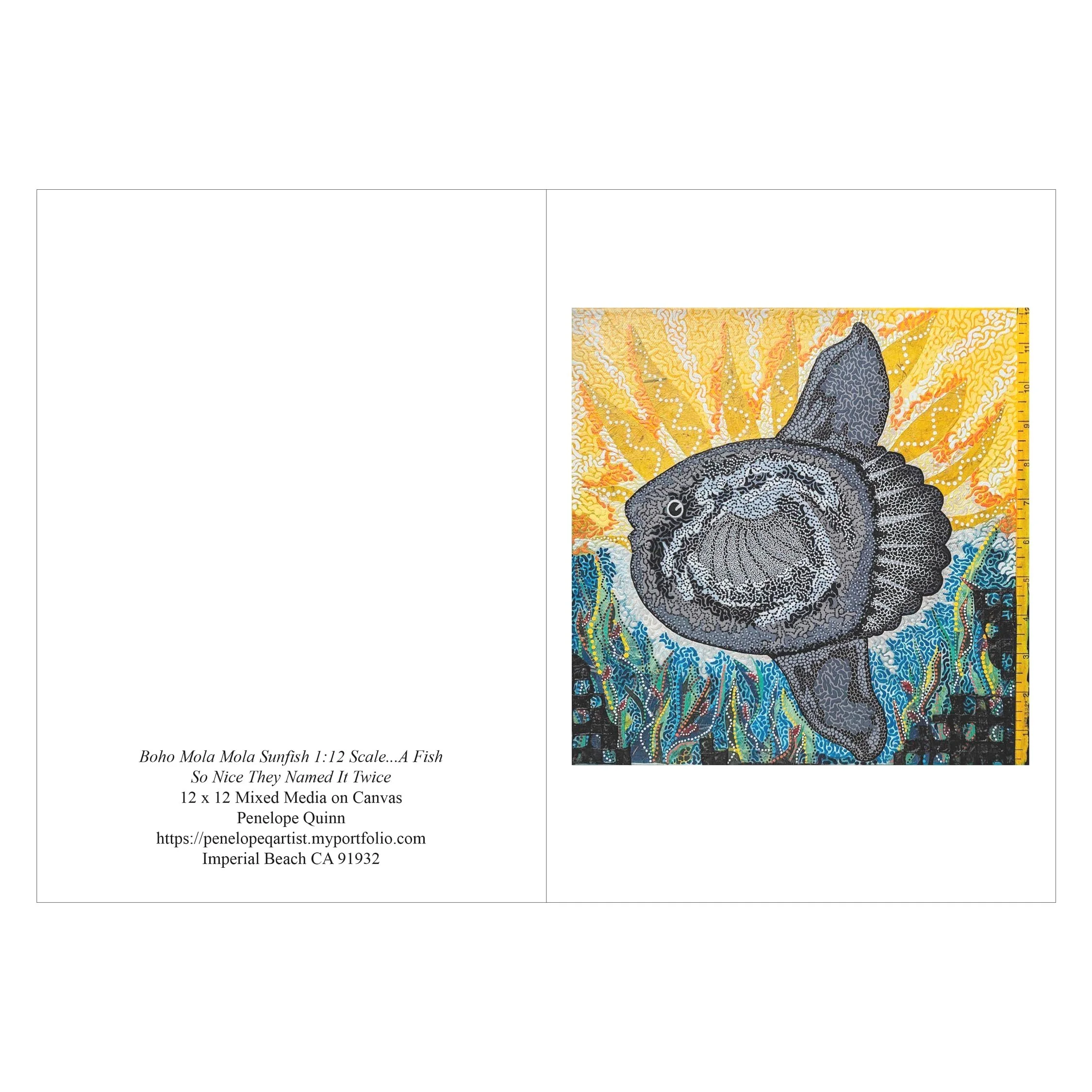 My greeting cards are 5×7 w/envelope. Card front is my art image printed on smooth white 65# card stock. Card inside is blank for your special message. The back of the card has the text citation about my art and the card is packaged in a clear glassine sleeve.